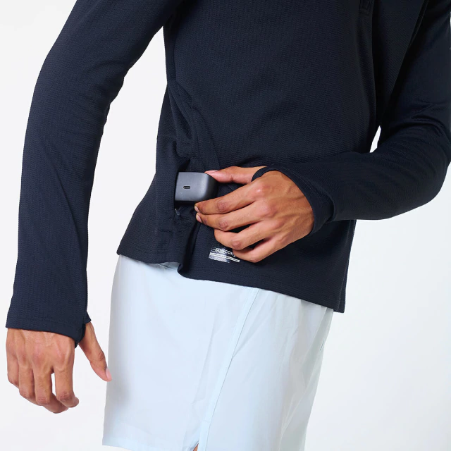 Ideal para entrenamientos en climas fríos. Confeccionado en tejido jacquard reciclado con interior frizado, ofrece abrigo sin perder movilidad. Su diseño funcional incluye medio cierre frontal, ojales para pulgar y un bolsillo lateral en la espalda, pensado para acompañarte en cada kilómetro.
